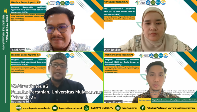 Samarinda, 2 Desember 2025 – Fakultas Pertanian Universitas Mulawarman menggelar Webinar Series 3 dengan tema “Integrasi Sustainable Livelihood Approach (SLA) dan Social…