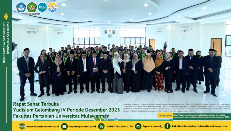Samarinda — Fakultas Pertanian Universitas Mulawarman kembali menyelenggarakan Yudisium Gelombang IV Periode Desember 2025, pada Kamis, 5 Desember 2025, bertempat di Ballroom…