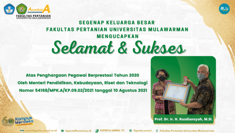 Segenap Keluarga Besar Fakultas Pertanian Universitas Mulawarman Mengucapkan “Selamat & Sukses Kepada Bapak Prof. Dr. Ir. H. Rusdiansyah, M.Si. Atas Penghargaan Pegawai…