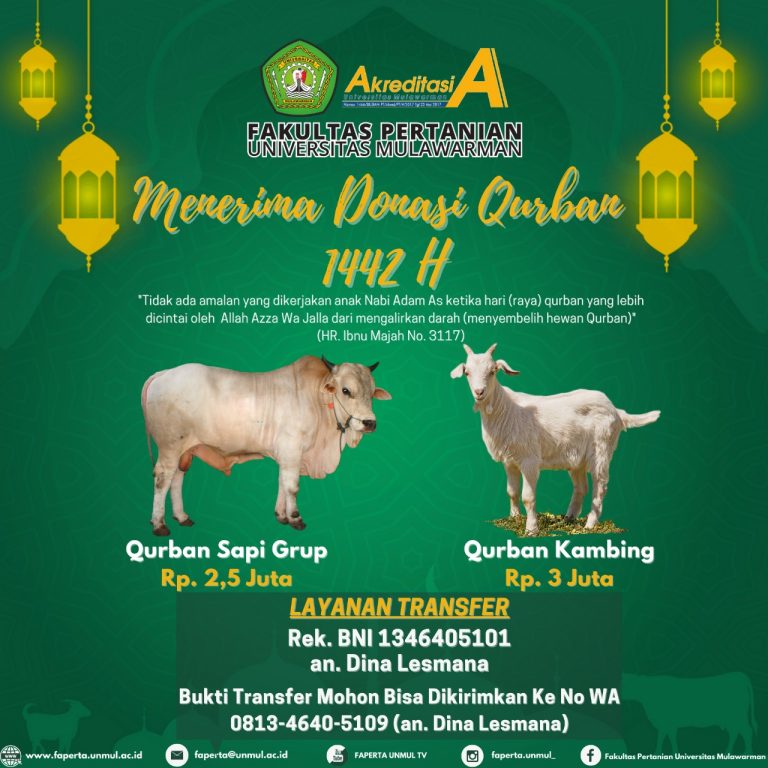 Bismillahirrahmaanirrahiim. Assalamu’alaikum warahmatullahi wa barokatuh. Kepada Bapak/Ibu Keluarga Besar Faperta Unmul Kami menawarkan untuk berqurban melalui fakultas, silahkan hubungi kami, semoga niat…