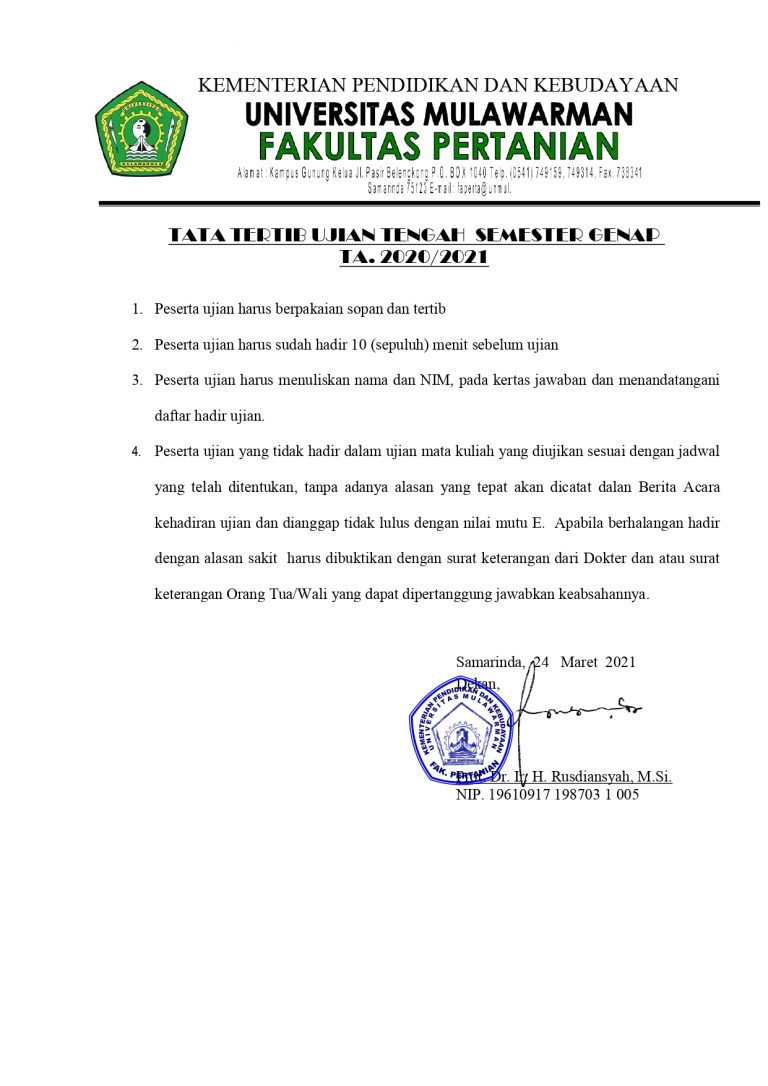 Atas nama Fakultas dan Segenap Civitas Akademika Fakultas Pertanian Universitas Mulawarman mengucapkan “Selamat Atas Kelulusan Dan Prestasi Akademik Yang Telah Dicapai Yudisiawan…