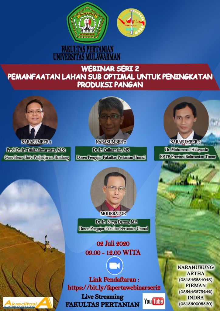 Di tengah menghadapi kondisi “New Normal” Pandemi Covid-19, Fakultas Pertanian Universitas Mulawarman menyelenggarakan Webinar Seri 2 dengan tema :