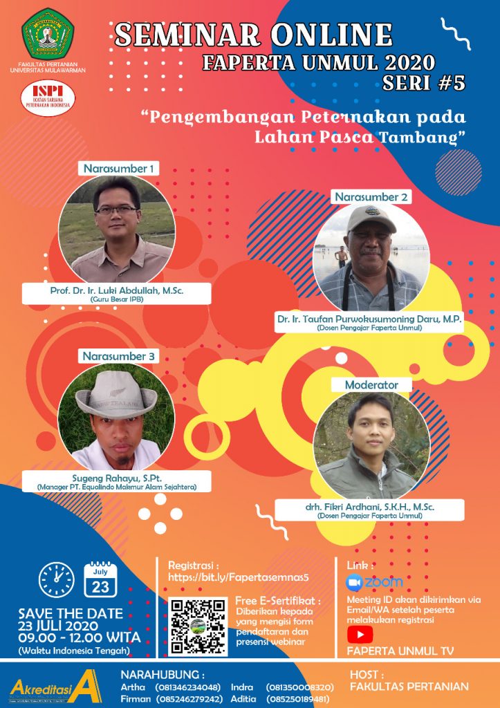 Fakultas Pertanian Universitas Mulawarman kembali mengadakan Seminar Online Fakultas Seri 5 di tengah menghadapi kondisi “New Normal” Pandemi Covid-19 dengan tema :