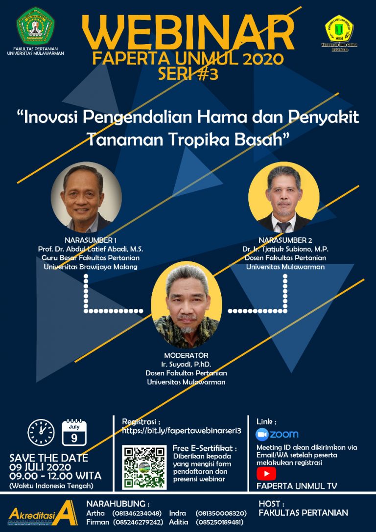 Yth. Bapak/Ibu, Saudara Yang Kami Banggakan Di tengah menghadapi kondisi “New Normal” Pandemi Covid-19, Fakultas Pertanian Universitas Mulawarman menyelenggarakan Webinar Seri 2…