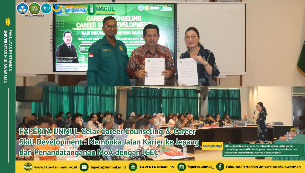 Samarinda – Fakultas Pertanian Universitas Mulawarman kembali menghadirkan program pengembangan karier bagi mahasiswa dan alumni melalui kegiatan Career Counseling & Career Skill Development bertema “Dari Indonesia ke Negeri Sakura”. Kegiatan ini dilaksanakan pada Kamis, 5 Februari 2026 bertempat di Gedung Prof. Ir. H. Rachmad Hernadi, M.Sc. (Gedung Bundar Faperta).