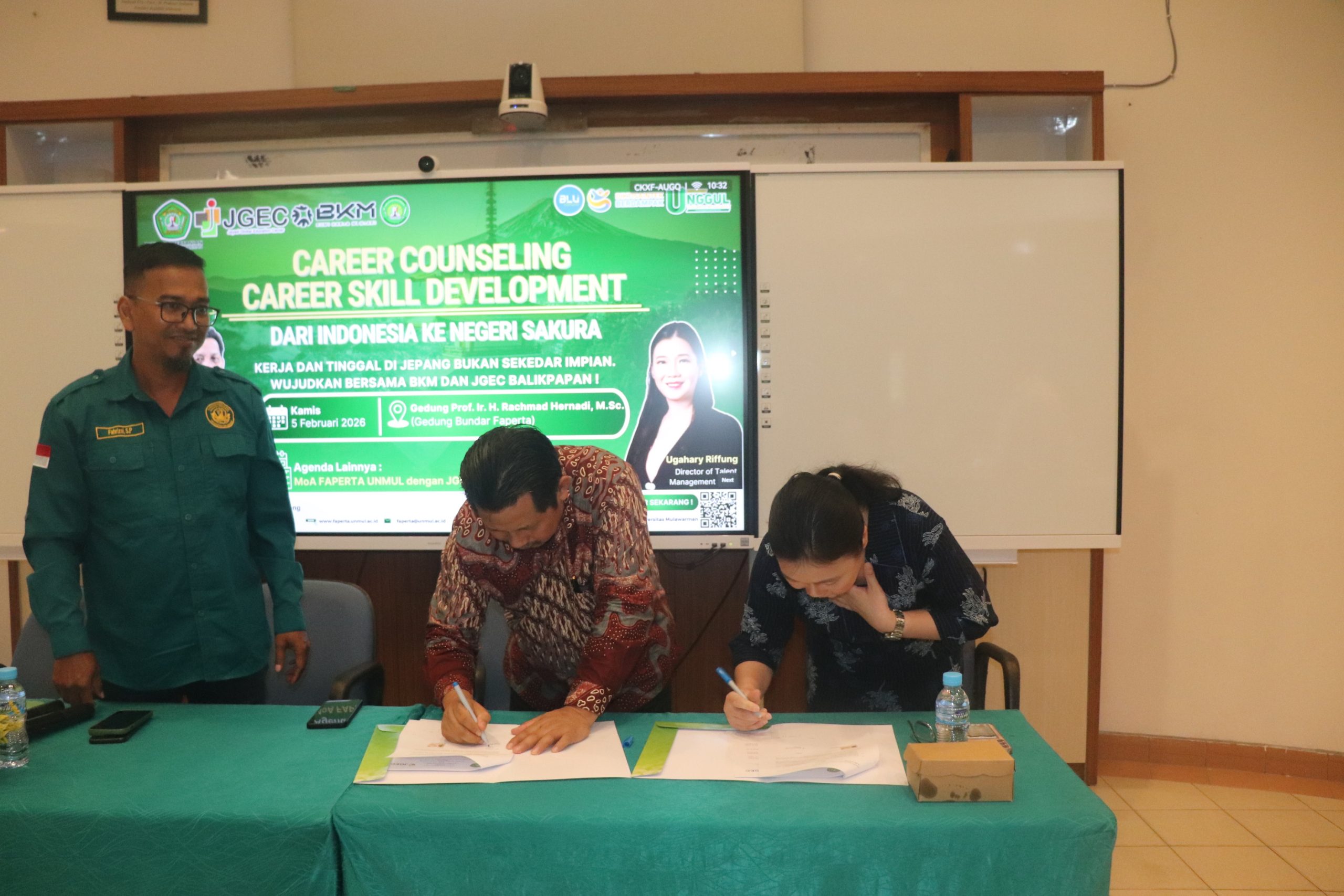 Peserta memperoleh berbagai manfaat, di antaranya pengenalan peluang dan prosedur kerja ke Jepang, diskusi interaktif bersama pakar, serta informasi program kursus yang disiapkan oleh JGEC. Selain sesi konseling karier, agenda penting lainnya adalah penandatanganan Memorandum of Agreement (MoA) antara Faperta Unmul dengan JGEC sebagai penguatan kerja sama bidang pengembangan sumber daya manusia.