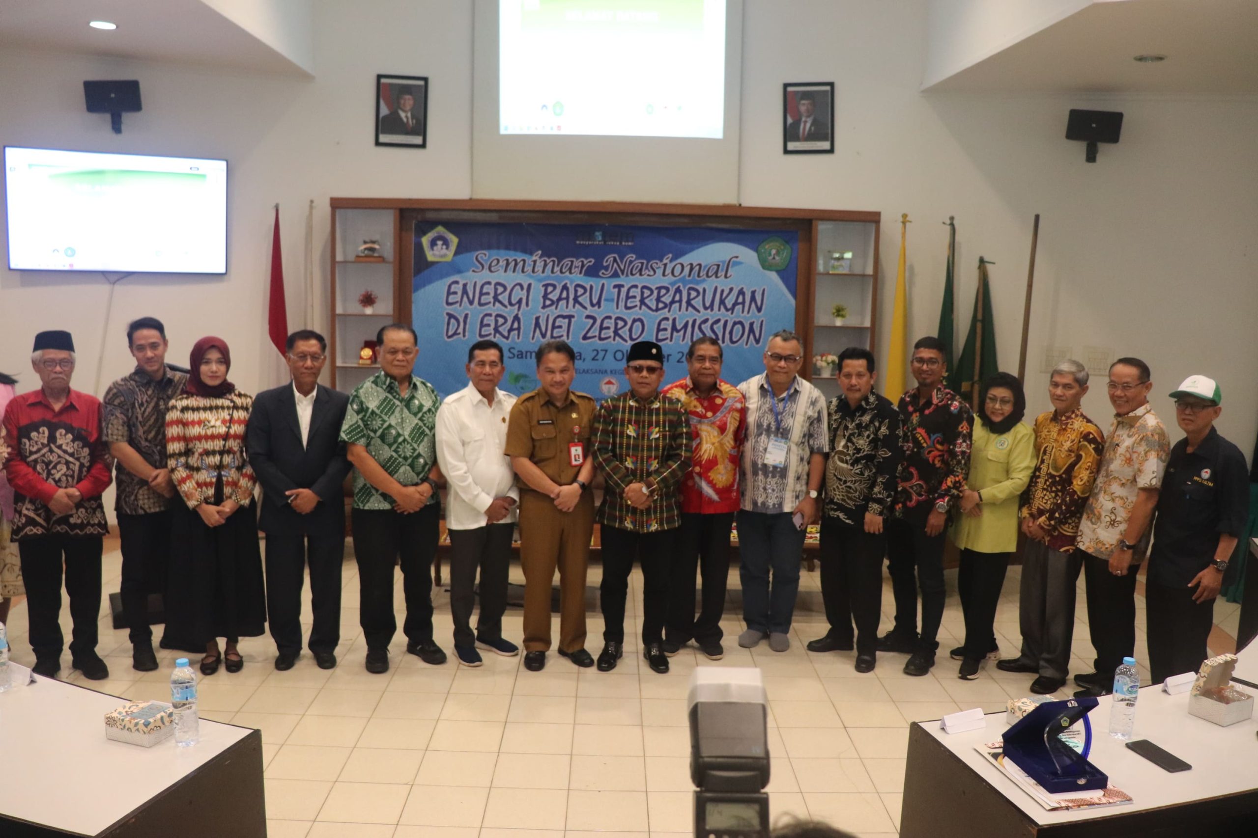 Dalam sambutannya, Dekan Faperta Unmul, Dr. Ir. H. Fahrunsyah, M.P., menyampaikan bahwa kegiatan ini merupakan bentuk kontribusi akademisi dalam mendukung transisi energi berkelanjutan di Kalimantan Timur. Hal senada juga disampaikan Rektor Universitas Mulawarman, Prof. Dr. Ir. H. Abdunnur, M.Si., IPU., ASEAN Eng., yang menegaskan pentingnya kolaborasi lintas sektor untuk mencapai target Net Zero Emission di Indonesia. Acara kemudian secara resmi dibuka oleh Staf Ahli Gubernur Kalimantan Timur Bidang III (Sosial, SDM, dan Perekonomian Daerah), drh. Arief Murdiyatno, diikuti sesi foto bersama dan penyerahan cinderamata.