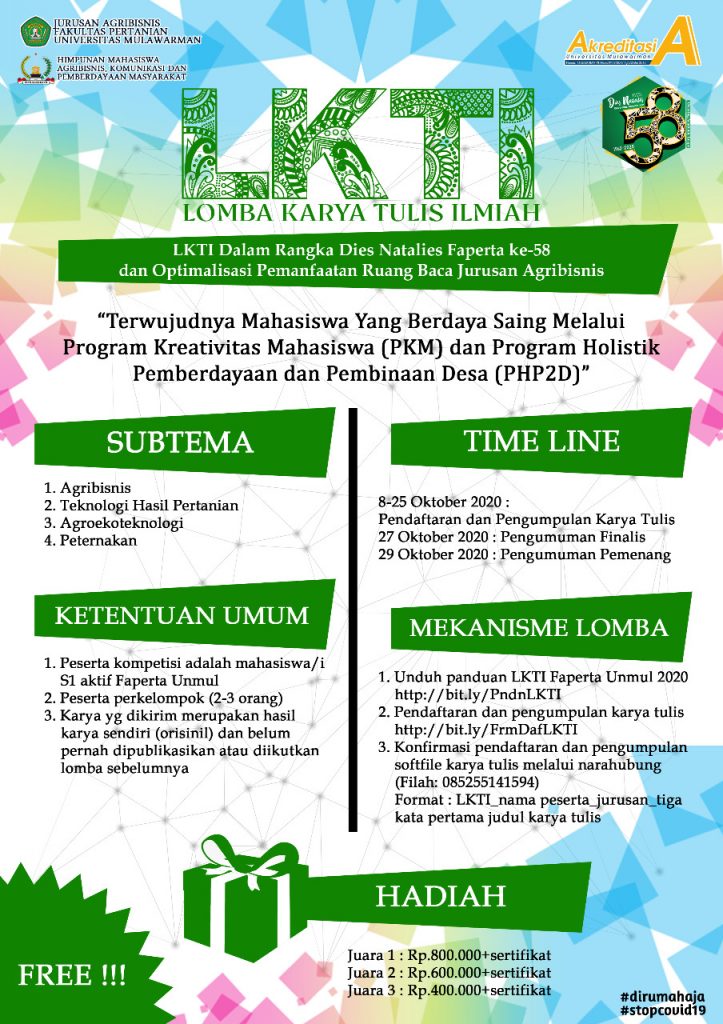 LKTI dalam rangka Dies Natalies Faperta ke 58 dan Optimalisasi pemanfaatan ruang baca Jurusan Agribisnis.