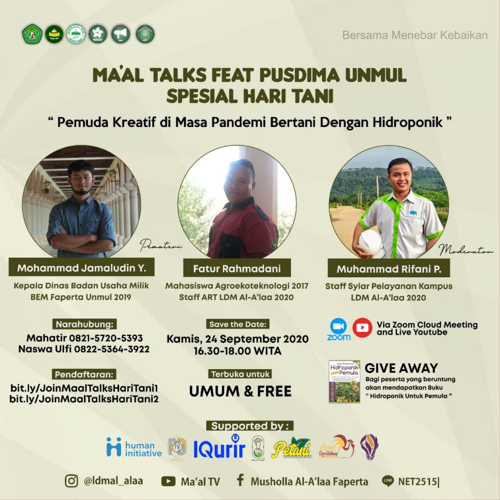Menyambut Hari Tani Nasional In syaa Allah kami akan mengadakan Kajian Keilmuan online Spesial Hari Tani dengan Tema :