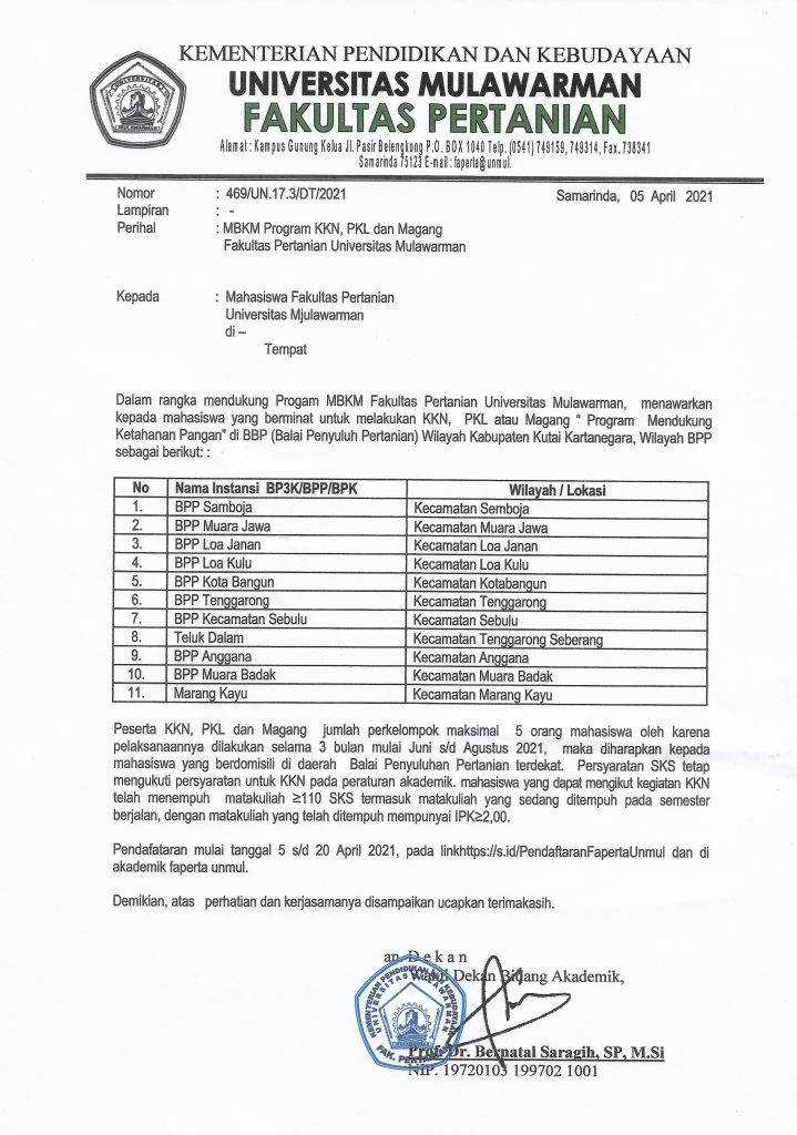 MBKM Program KKN, PKL dan Magang Fakultas Pertanian Universitas Mulawarman