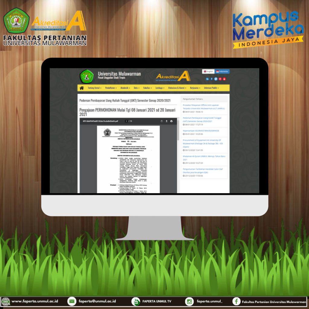Berikut informasi resmi Pedoman Pembayaran Uang Kuliah Tunggal (UKT) Semester Genap 2020/2021.