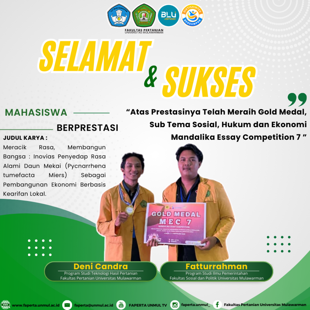 #MahasiswaBerprestasi #MandalikaEssayCompetition #GoldMedal #FapertaUnmul #InovasiLokal