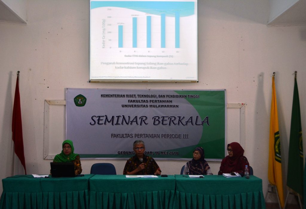 Fakultas Pertanian Universitas Mulawarman secara konsisten melakukan peningkatan mutu, kualitas dan kinerja dosen, hal ini ditunjukan dengan terselenggaranya Seminar Berkala 2 Bulanan Fakultas Pertanian Periode III pada hari Rabu, 16 Mei 2018. Seminar berkala ini merupakan seminar yang bertujuan untuk memantau kinerja penelitian dosen, khususnya tenaga dosen yang mendapat dana hibah penelitian. Acara dihadiri oleh dosen serta mahasiswa/I Fakultas Pertanian, dan dibuka oleh Pembantu Dekan I Fakultas Pertanian Prof. Dr. Bernatal Saragih, M.Si. yang dilanjutkan dengan penyerahan sertifikat kepada dosen yang menjadi peneliti pada seminar kali ini, yakni: Dra. Yuliani, MP. dan Ir. Eliyani, M.Si.