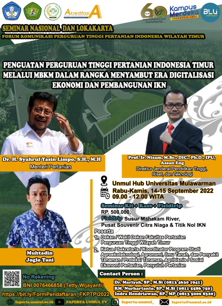 Dengan tema “PENGUATAN PERGURUAN TINGGI PERTANIAN INDONESIA MELALUI MBKM DALAM RANGKA MENYAMBUT ERA DIGITALISASI EKONOMI DAN PEMBANGUNAN IBUKOTA NEGARA (IKN)