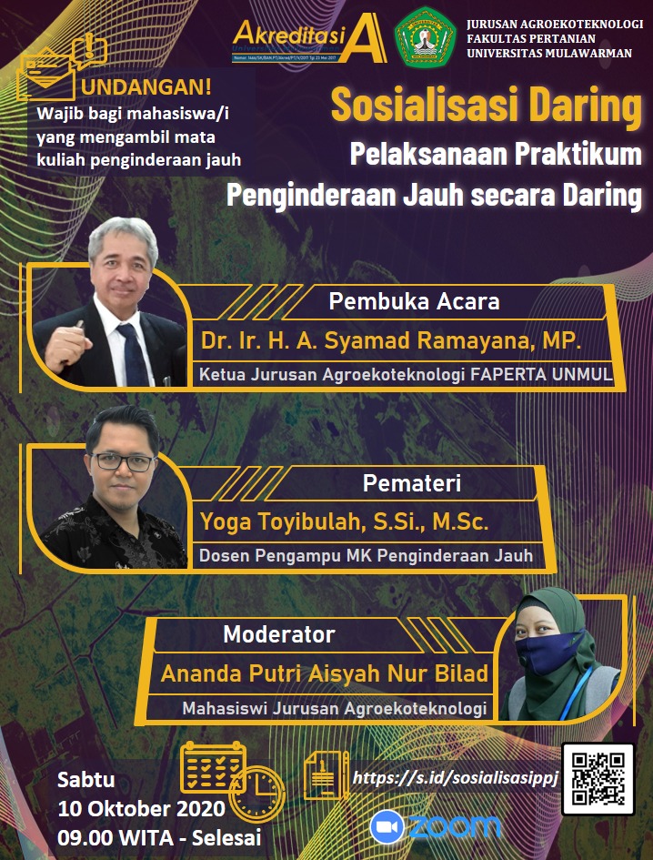 Bersama ini kami memberitahukan bahwa akan dilaksanakan Sosialisasi Daring dengan Tema “Pelaksanaan Praktikum Penginderaan Jauh secara Daring”. Acara akan dilaksanakan pada: