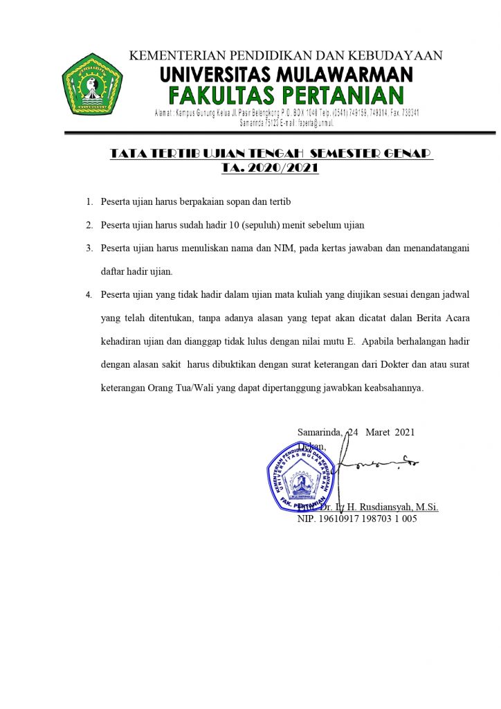 ← Jadwal Ujian Tengah Semester Genap Tahun Akademik 2020/2021 Fakultas Pertanian Universitas Mulawarman