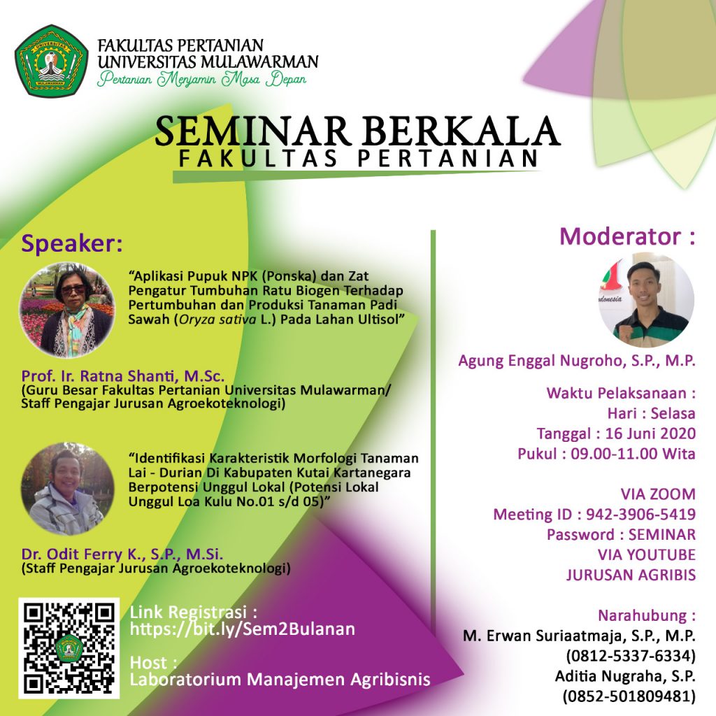 Jurusan Agribisnis FAPERTA UNMUL menyelenggarakan Seminar Berkala. Dimohon partisipasinya kepada bapak dan ibu dosen sekalian.