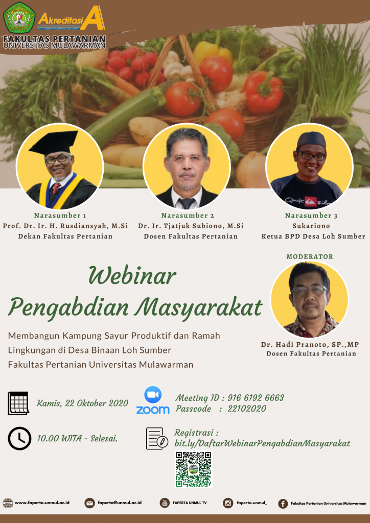 Fakultas Pertanian Universitas Mulawarman mengadakan Webinar Pengabdian Masyarakat dengan mengambil tema :