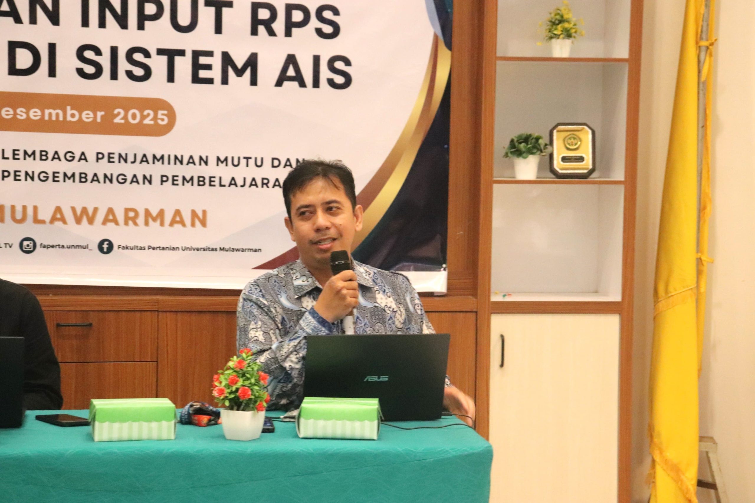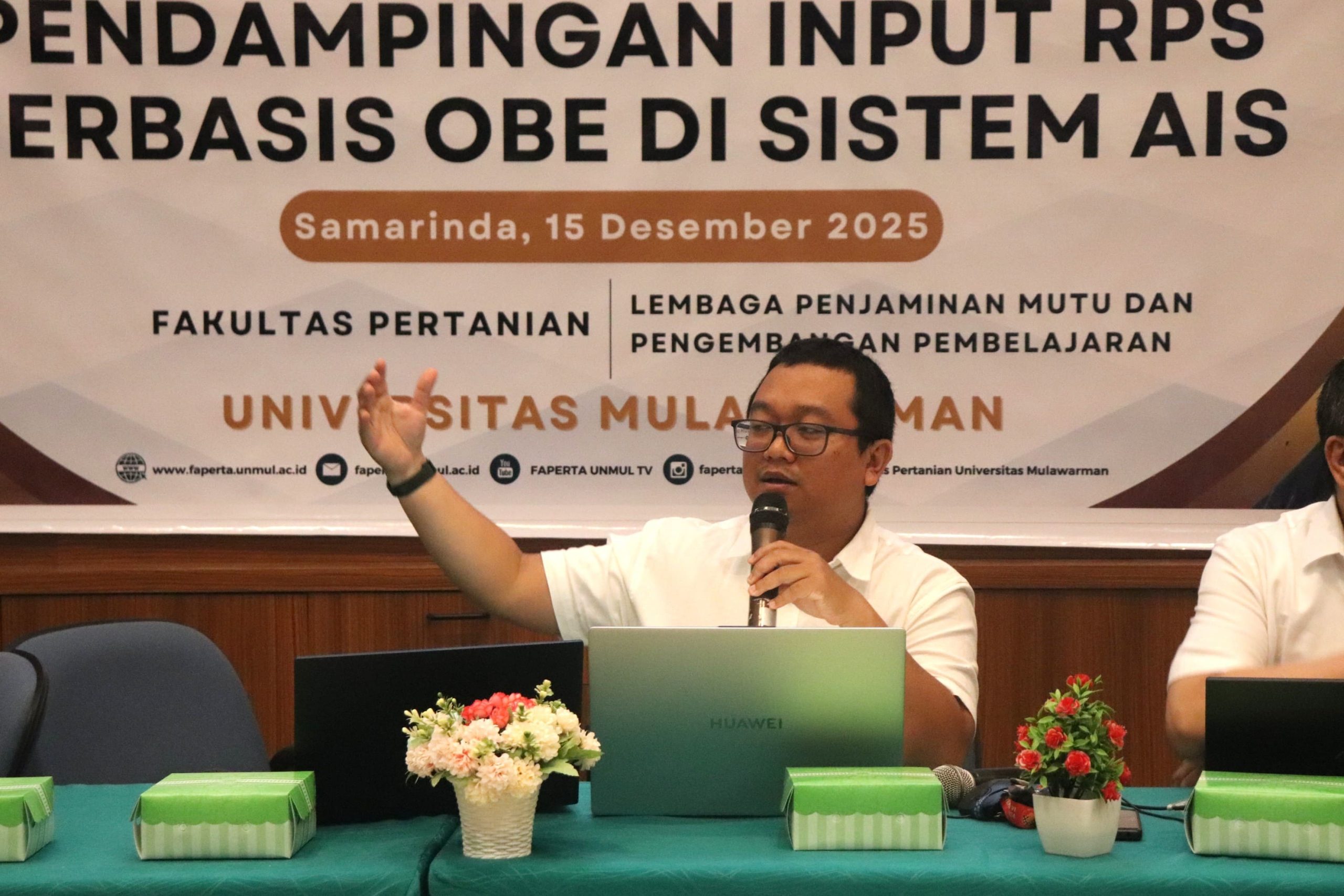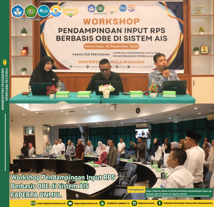 Fakultas Pertanian Universitas Mulawarman (Faperta Unmul) menyelenggarakan Workshop Pendampingan Input Rencana Pembelajaran Semester (RPS) Berbasis Outcome Based Education (OBE) di Sistem AIS pada Senin, 15 Desember 2025, bertempat di Gedung Rahmad Hernadi, Fakultas Pertanian Universitas Mulawarman.