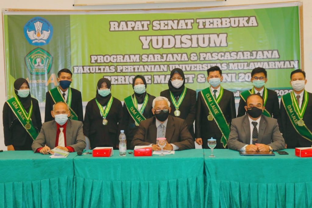 Awal tahun 2020 ini wabah covid-19 telah masuk ke Indonesia yang membuat banyak kegiatan formal/informal yang harusnya mengumpulkan banyak orang dengan berinteraksi langsung terpaksa harus ditunda dan dialihkan via daring (online) dengan berbagai cara tentunya. Fakultas Pertanian Universitas Mulawarman kembali mengadakan Rapat Senat Terbuka dalam Rangka Yudisium Sarjana & Pasca Sarjana Gelombang ke I dan II periode Maret dan Juni 2020. Prosesi Yudisium ini dilaksanakan pada hari Rabu (29/7) bertempat di Gedung Rachmad Hernadi Fakultas Pertanian Universitas Mulawarman dan Via Zoom Meeting.