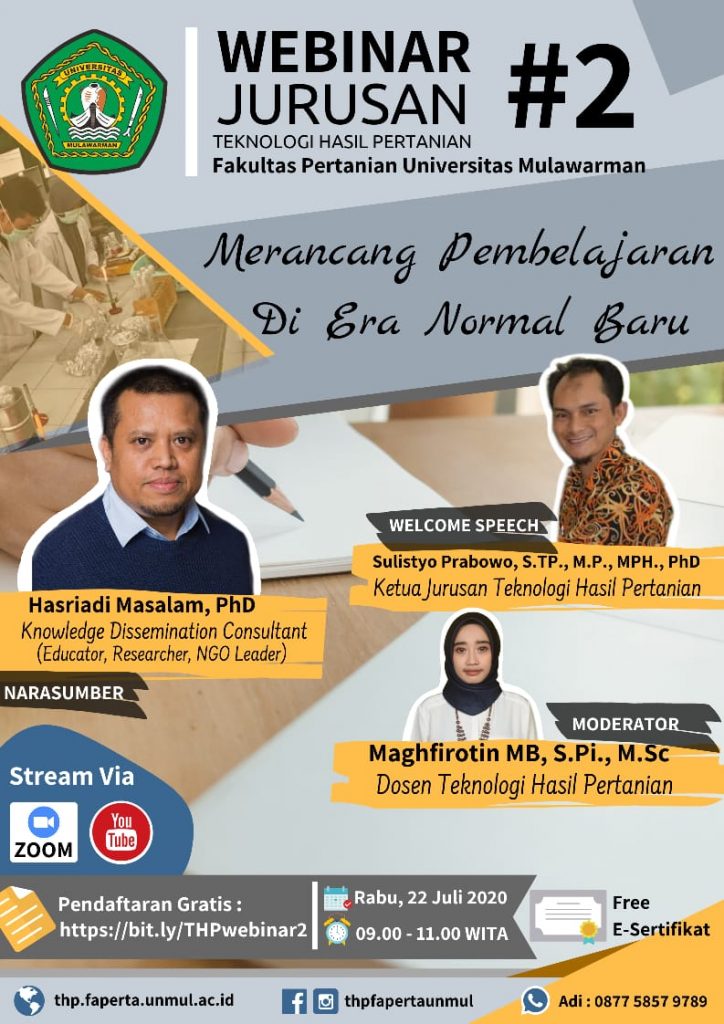 Jurusan Teknologi Hasil Pertanian Fakultas Pertanian Universitas Mulawarman mengundang Bapak/ Ibu untuk menghadiri Webinar (via Zoom) dengan tema :